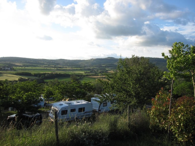 Lämnade campingen i morse – ganska tidigt. Vi har sedan kört genom rejäla regnskurar. När vi sedan körde in i Provence sken det upp och solen tittade fram. Härligt! Vi hr nu hittat en camping strax väster om Montelimar. Den ligger fantastiskt naturskönt, med den enorm utsikt över dalen. Den är terrasserad och därmed väldigt backig. Men då får vi motion när vi ska till poolen.