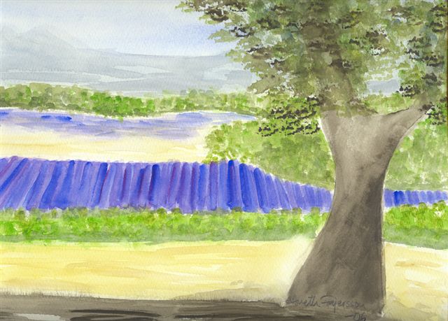 I morse var det en helt underbar morgon. Det var alldeles stilla. Solen sken från en klarblå himmel och fåglarna kvittrade och sjön. Jag satt en lång stund och bara tittade på utsikten. Tänk om lavendelfälten slagit ut – då skulle det vara så vackert att det nästan gjorde ont. Nu ser jag bara raderna och får tänka mej in i den lila färgen. Jag känner istället doften av forsytia och nerium som blommar vackert. Ända fram till lunch är jag i detta saliga livs-rus. Sedan kom molnen. Och regnet. Så nu är resrutten lite förändrad. Vart vi hamnar sen? Ja det får du veta i morgon (om det finns en fungerande internetuppkoppling dit vi kommer)