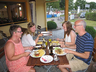 Natten tillbringar vi strax norr om Freiburg, i Tyskland. Vi badar och äter gott på campingens restaurang.
