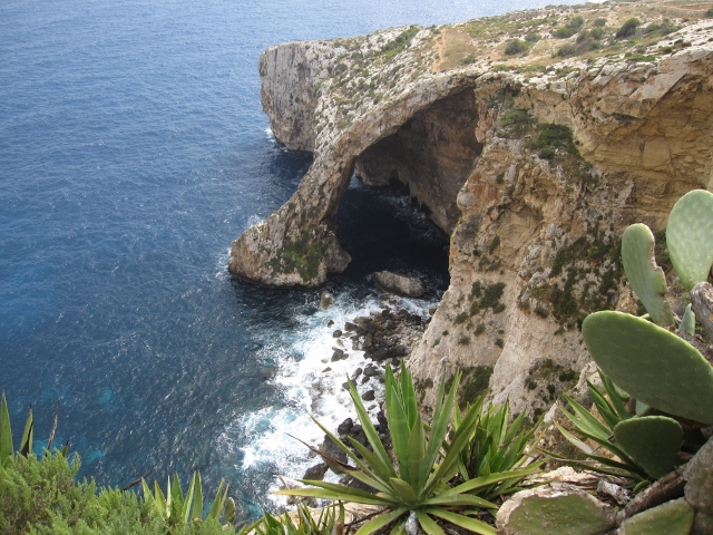 Vi avslutar rundturen med ett besök vid Blue Grotto som vi bara fick se på håll. Eftersom det blåste för mycket fick man inte åka båt in igenom grottan. Det hade annars varit häftigt. Men, men…. vi fick iallfall se den uppifrån, badande i sol.