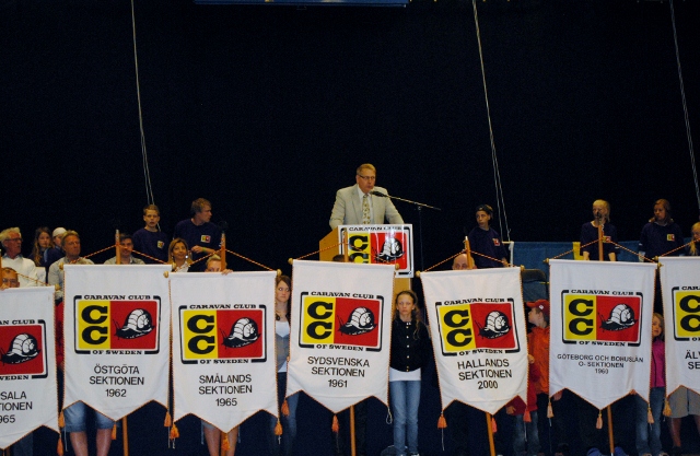 Först gick en blåsorkester och höll takten sedan kom Riks och därefter alla olika sektioner. Som du kan se av bilden är CaravanClub en förening med anor. Den bildades 4 april 1958 och har idag nästan 30000 medlemsfamiljer. Människor som är intresserade av camping och friluftsliv – oberoende om man har husvagn, husbil eller varför inte cykel och tält!
