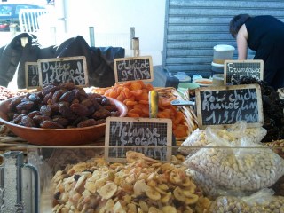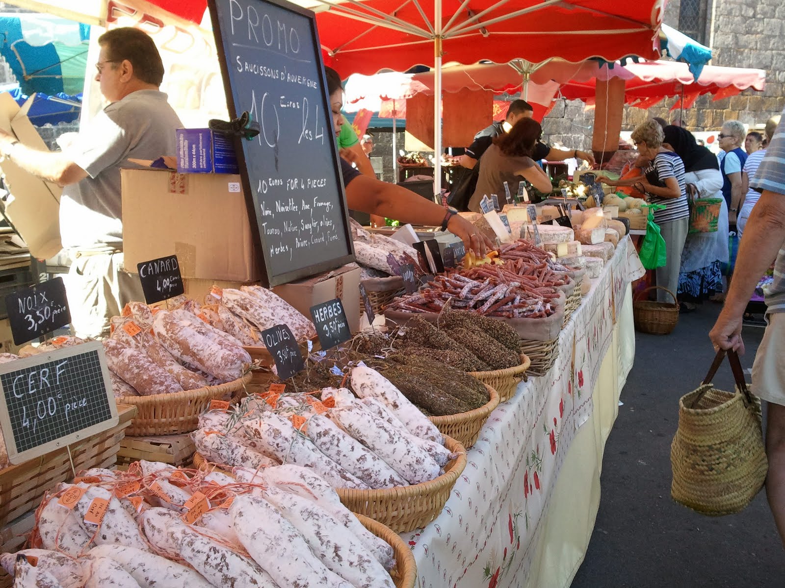 Marknadsdag i Vias. Vi stiger upp ganska tidigt och cyklar dit, innan det blir för varmt. Ingen ”höjdar-marknad” men ändå roligt att gå omkring och titta. Naturligtvis blev det dottern som shoppade – igen.