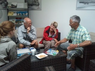 Under tiden vi väntar på att bilen ska bli klar spelar vi Kimble, med ett par från Finland. Det blir en landskamp som, på grund av nybörjarotur, vinns av Finland. Det var ju deras spel och dom har tränat varje dag under någon veckas tid. Men roligt var det!