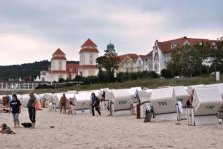 Vi for istället vidare till de östra delarna av Rügen och såg oss omkring där. Mysiga stränder och vackra badhotell. Och ett mycket märkligt semesterkomplex, som står oanvänt. (Hitlers bygge Prorer Wiek) I norr hittade vi camping Drewoldke i den lilla stan Altenkrirchen. Här var det mycket fräscha servicehus. Campingtomterna var inte avgränsade utan det var träd och vegetation som avgjorde platsernas storlek. Det blev ett dopp i havet och när kl var 20 hade vi fortfarande 22.9 grader ute. Helt vindstilla och enormt med mygg…..