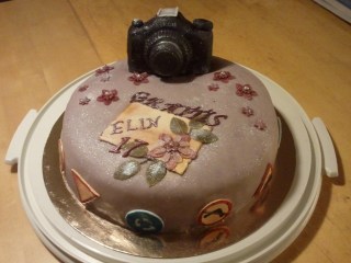 Vi har sån tur att vi har en ”tårt-makerska” i bekantskapskretsen. Johanna gör fantastiska tårtor. Hon kollade lite med Elin tidigare, om vad hon är intresserad av. Och så skapar hon, utifrån önskemålen. Elin berättade bara att hon övningsskör och gillar skolämnet fotografisk bild. Och tårtan blev så här! Visst är den häftig?