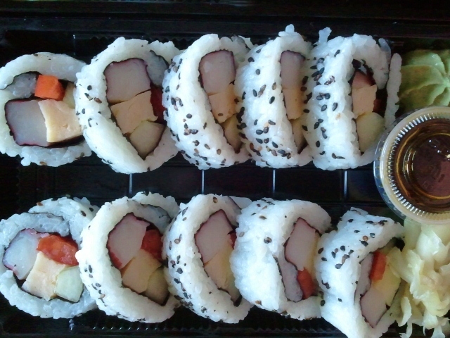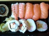 Sen händer det att käre maken drar iväg på tjänsteresa, så där nån gång emellanåt. Den enda fördelen med det är, att eftersom han inte gillar sushi, så passar vi på när han är borta. Så ikväll blev det hämtmat.