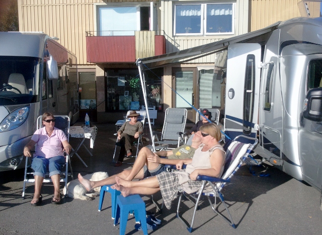 Eftersom vädret var helt fantastiskt igår, satt vi och njöt av värmen och solen under eftermiddagen. Och ”Vi” det var Hasse & Maria, Lena & Reiner, Anders & Inger och så Göran och jag. Det är ju alltid så trevligt att träffas och prata om resor och utfärder vi gjort. Jag skulle gissa att det var besöksrekord på Kopparbergs marknad igår, för det kryllade av folk och alla letade parkeringsplatser. Vi hade ju sån tur att vi bokat en plats tidigt. Och det var mycket bra ordnat för oss med husbil eller husvagn. Motorklubben hade fixat och märkt upp, spärrat av och stod som parkeringsvakter. En eloge till alla frivilliga som lagt ner många arbetstimmar för att det skulle fungera för oss gäster.