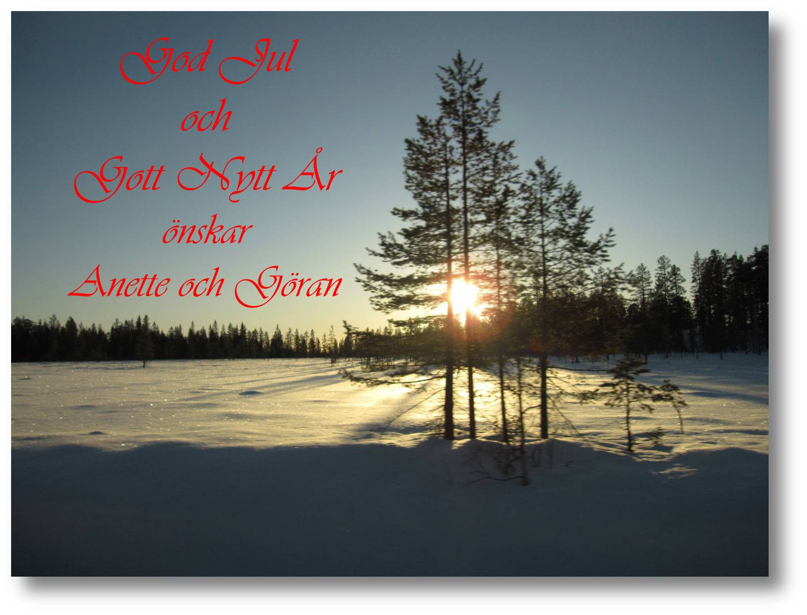 Tyvärr har vi inte lika fint väder som på vårt julkort eftersom den fina snön som kom, nu håller på att rinna bort i ett stort plask.