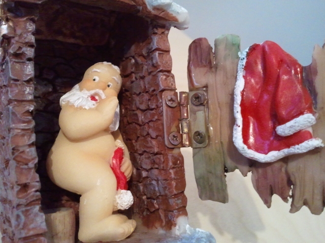 Till och med Tomten tar det väldigt lugnt idag. Han blev lite ertappad, när jag gläntade på dörren…..