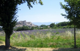 Ju närmare Nyons vi kom, desto fler fält med lavendel såg vi. Blått och lila i alla nyanser. Överallt. Det var en mäktig syn. Vi stannade och gick mot kanten av ett fält. I bakhuvudet fanns en syn om att hela familjen kunde tumla runt bland lavendel, hoppa och dansa. När vi kom närmare såg vi att det var mängder av insekter som flög omkring. Och säg den som vill tumla runt bland bin och humlor…. Vi fick nöja oss med att stå på avstånd och titta och njuta.