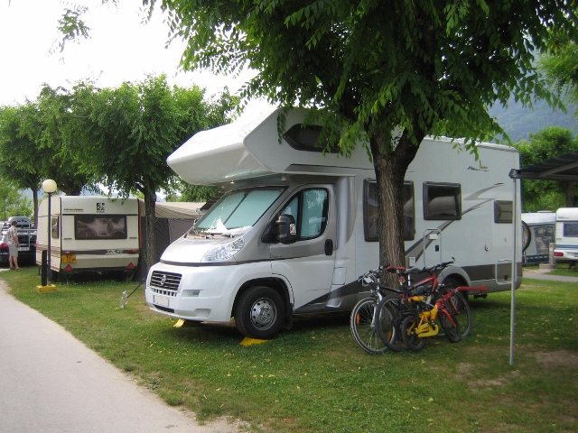 Vi brukar alltid tycka att det är så skönt med husbil, om man jämför med alla med husvagn. Vi stannar, plockar ut möblerna och korkar upp vinet… och sedan sitter vi där och tittar på husvagnsgrannarna som sliter med förtält, stödben, staket, möbler som ska ut i förtältet och allt vad det är… Men markis, det har vi ju! Vi använder den rätt sällan, så vi är inte så värst bra på det där. Nu brukar vi försöka spänna fast den i backen med linor och tältpinnar. Men vi har varit med om att den börjat dra väg och vi stått där och slitit i blåsten. (Medan husvagnsgrannarna suttit i sina förtält i godan ro och tittat på ;))
