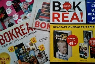Snart Bokrea. Förr om åren (låter som om jag vore lastgammal…) tyckte jag bokrean var en rolig tilldragelse. Jag satt hemma och kollade igenom alla kataloger och prickade för vad jag ville ha. Sedan upp och ut tidigt på morgonen, helst innan jobbet, så de böcker jag ville ha fanns kvar. Jag läste väldigt mycket och köpte årets ranson av böcker. Helst tjocka tegelstenar.