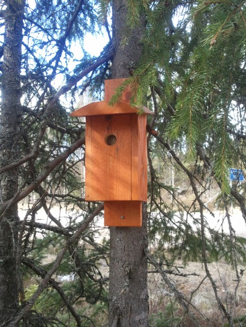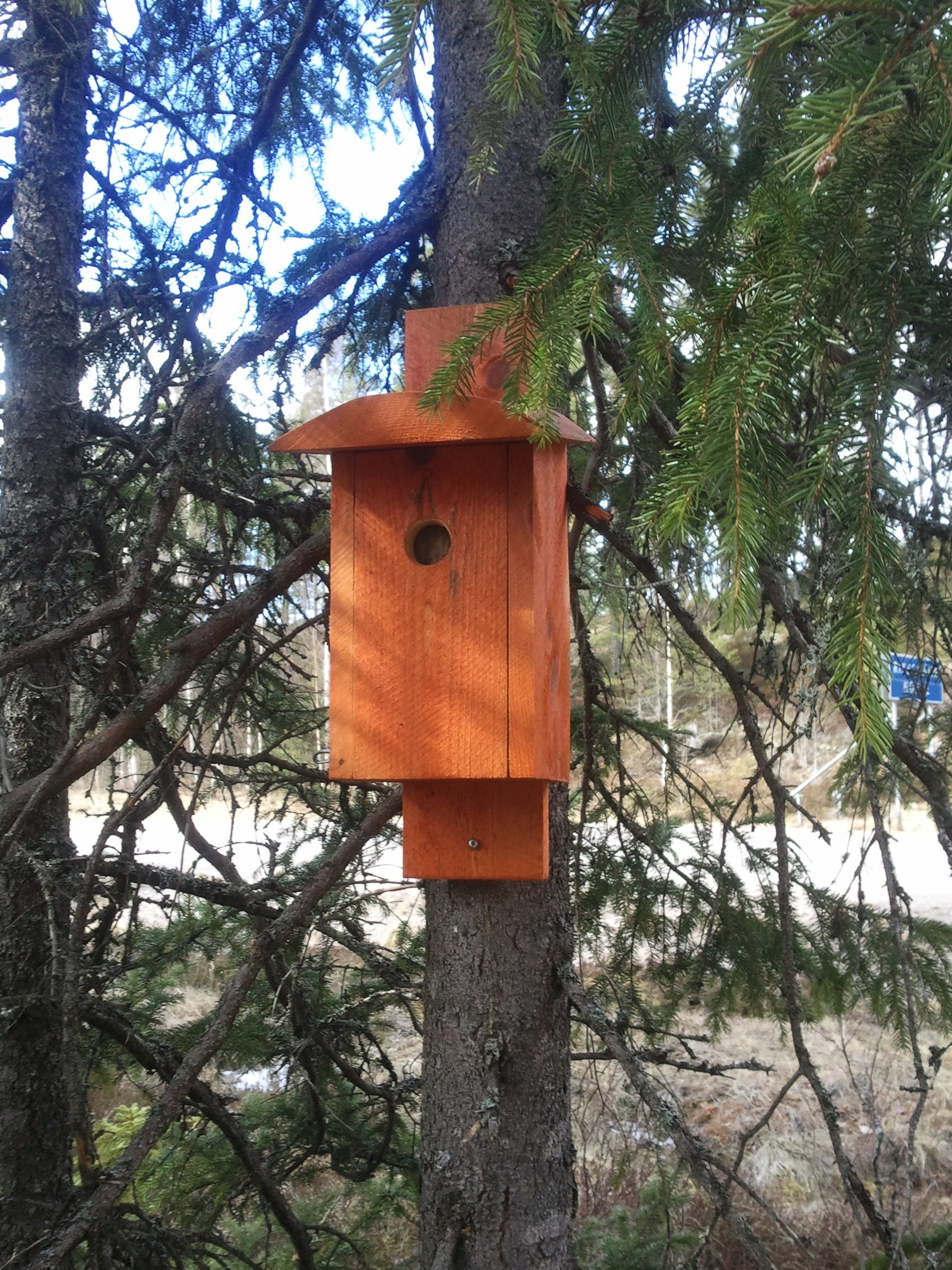 Jaaa skatten (cachen) fanns i fågelholken och själva hålet var förtäckt så inte det skulle flyga in nån fågel. 🙂