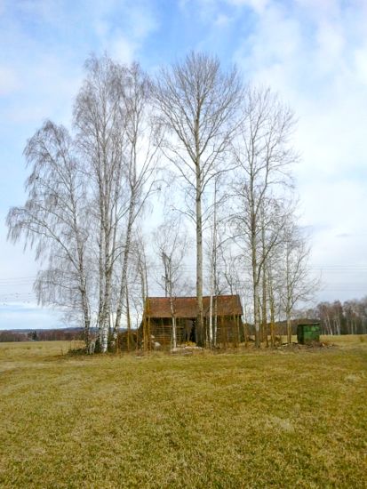 Sedan gick vi över åkrar och ängar och här, vid ett av ladans hörn hittade vi en liten rackare ….
