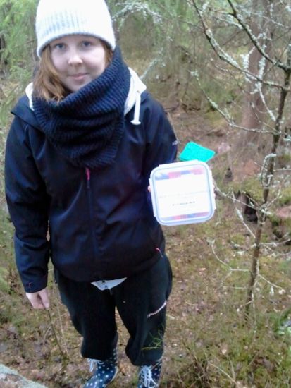 Här är vi nästan först att hitta denna nya cach. Som nr 3 har Elin loggat sej och som nr 4 kom vi. Kul!