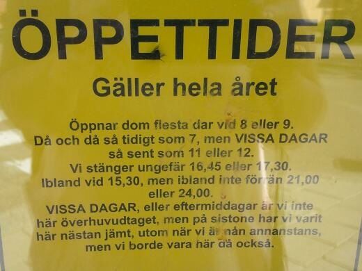 Att mötas av nedanstående skylt på en butiksdörr, kan ställa till med lite problem. När är det egentligen öppet???
