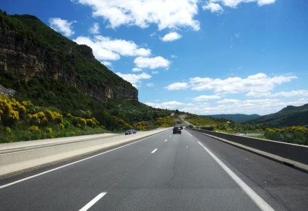 Vi kom i alla fall i väg vid 7.45 i morse. Det var svalt, bara 16 grader. Och det höll sej så framåt Vishy. Och ännu bättre blev det vid Clermont-Ferrand och när vi körde på gratis-motorvägen A75, som går mellan Clermont-Ferrand och Beziers, började det bli skapligt varmt i bilen.