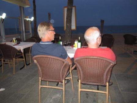 Efter en fantastiskt god middag, med Musslor, Fidoua (en slags nudelrätt) och Creme Catalan satte sej gubbsen tillrätta och kollade ut över Medelhavet