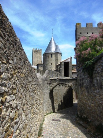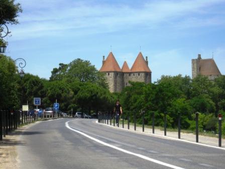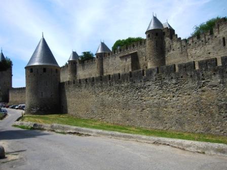 Lördag morgon släppte vi på handbromsen och for tillbaka till Frankrike. Vi gjorde en avstickare till Carcssonne, i värmen och såg oss omkring. Mäktiga murar, många butiker och ett glatt folkliv.