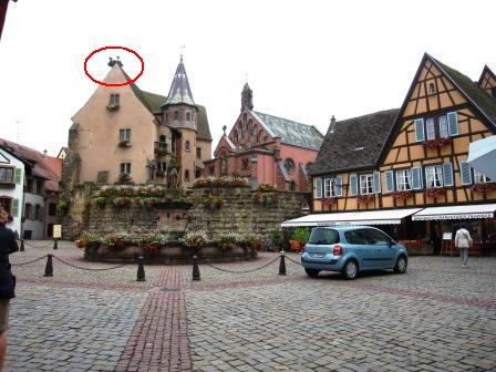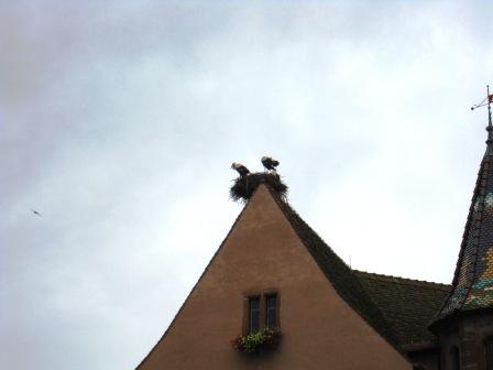 Eftersom det princip har regnat hela dan, måste vi ju hitta på nåt att göra. Så vi for in till den lilla staden Eguisheim. Staden är födelsestad för Påven Saint Leo IX och han föddes år 1002, så mycket var väldigt gammalt. Nu kan jag tycka att det är lite för mycket tillrättalagt, för välrestaurerat. Visst är det mysigt med alla gamla hus men behållningen var nog alla de stork-bon som fanns här. Dom var annorlunda och lite häftiga faktiskt. Och så dom låter!