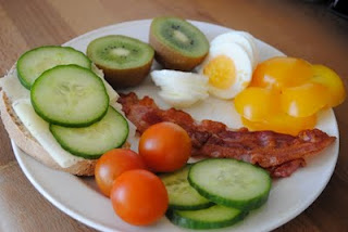 Den frukosten brukar vi också ta ibland. Vi steker ganska mycket bacon, så det räcker fler gånger, för att slippa oset. Gott är det, och nyttigt sägs det i vissa böcker vi läst och rättat oss efter!? Grädde också! Härligt i alla fall. Ha en bra dag! Kram 3 M