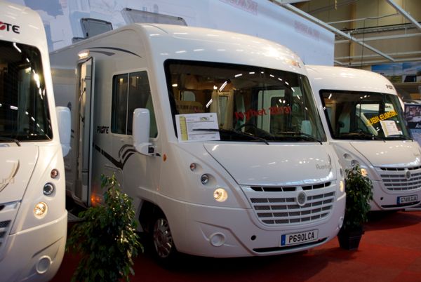 Idag det varit betydligt mera folk på mässan. Men ändå har det inte varit speciellt långa köer in i ekipagen, förutom i det extremaste modellerna, där man bara släpper in några åt gången. Själv har jag haft väldigt svårt att slita mej från Carthagos monter. Där stod ju drömbilen…. En helintegrerad bil med en sk QueenBed (drottningsäng) så man kan gå runt sängen både vid långsidorna och vid fotänden. Bra med skåp, lådor och garderober. Nej men nu ska jag visa er nåt annat än Carthago….