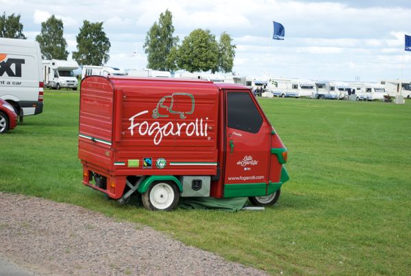 Den här söta lilla kaffevagnen fanns ute på området. Under dagen fanns den stationerad i Fiats monter där vi kunde köpa en god kopp kaffe