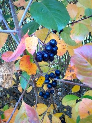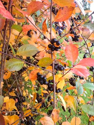 Väl hemma drog regnet in men mellan skurarna for vi snabbt iväg för att plocka lite aronia-bär. Eftersom vi haft några frostnätter vad de dags att plocka dem.