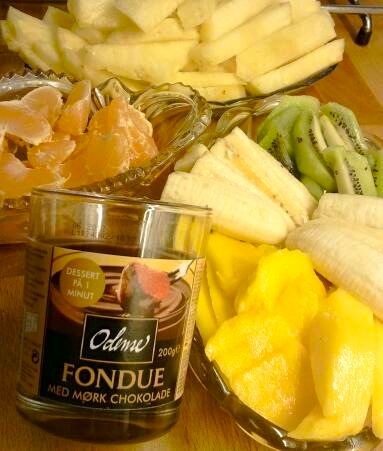 Utan nån som helst anledning, festade vi till det lite med en enkel chokladfondue. Glasburken köpte vi på Ullared sist vi var dit. Den skulle värmas 1 minut i micron, så var innehållet smält. Vi doppade frukt, annanas, satsumas, kivi, banan och mango. Inte speciellt LCHF-mässigt, men gott var det! Lyxade du till din söndagskväll?