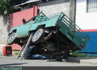 Hu så hemskt att palla upp bilen med brädor! Svärsonen till en granne låg under sin bil, som var uppallad med domkraft. Domkraften höll inte!Han omkom!