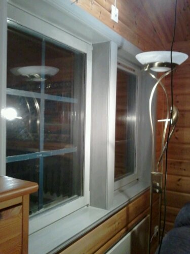 Nu är vi tillbaka i vår stuga i Stöten, Sälen och projekt ”snygga upp stugan” är inlett. Igår när vi kom upp kastade vi oss över fönstren. Ner med gamla gardiner och bort med den gröna lasyren. Nu blir det grå målarfärg.