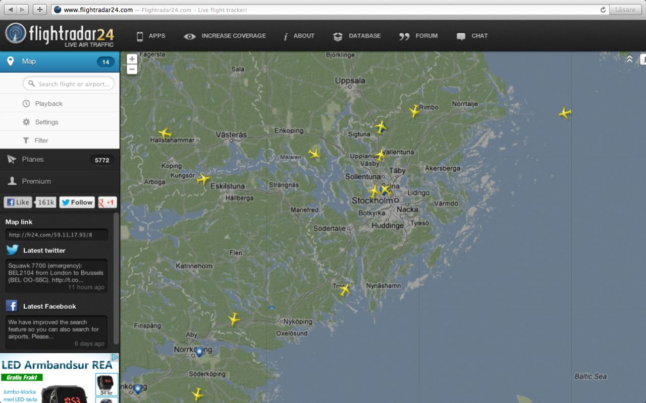 Jag har sett den där sidan. Jag tycker den är lite läskig. Såååå många plan som är ute och far.