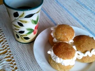Mums filibaba! Vi har också fuskat och ätit några stycken. Jag gör mandelmassa som jag blandar med hackade nötter och kardemumma innan grädden. Är också gott. Precis också som Matts sa ovan med varm mjölk, hade vi som barn. Tack för receptet. Kram 3 M