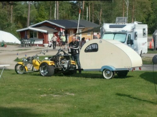 Jag kan inte låta bli att visa er ett par till jätte mysiga ekipage, jag stötte på i somras. Entusiaster som inte brydde sej om att flera fotografer samlades kring dem. Detta lilla ”ägg” fick sedan upp förtältet och det var större än husvagnen, men tyvärr fastnade det inte på bild.