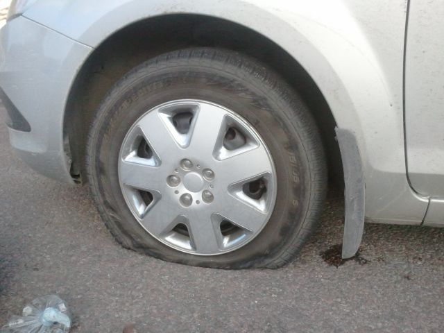 På väg till Falun, efter jobbet, hände det som inte är så kul. På motorvägen. Luften gick ut. Både bildligt och bokstavligt. In på en parkeringsficka och ur med domkraft och reservdäck. Och naturligtvis kunde varken jag eller Ida lossa muttrarna. Så vi fick vackert ringa till assistans-service och sätta oss tillrätta för att vänta. Tidigare hade vi hört en långtradare som tutat, men det brydde vi väl oss inte om.