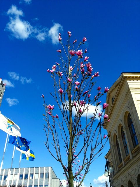 När våra vänner också anslutit, tog vi en promenad längs med kajkanten och upp på stan. Vi hittade blommor och grönska och faktiskt också en cache. Att Västerås var så vackert hade jag faktiskt inte en aning om.