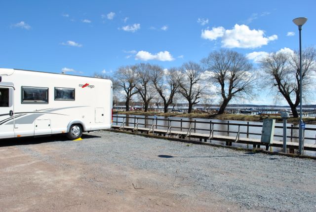 Idag provar vi en, för oss, ny husbilsplats i Västerås. Det finns en husbilsplats i gästhamnen Koordinaterna hit är: N 59° 36.114′, E 16° 32.789′ och ligger härligt vid den östra delen av Lögarängshamnen. Här finns tillgång till el och servicehus för 150:-/natt + 30:- för el. Husbilsplatsen ligger precis bredvid vattnet och utsikten är härlig.