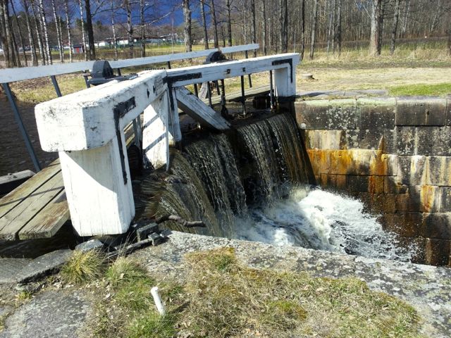 Det strömmar mycket vatten genom en av alla de slussar som finns här i Hallstahammar