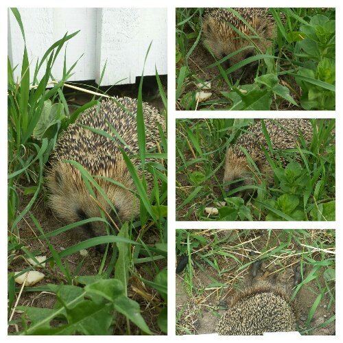 När jag gick ut på altanen idag och drog upp ett fönster såg jag att Kotten kommit tillbaka till oss. Han (eller hon) låg på mage, till hälften under vår altan och sov, nästan så han snarkade. Efter en liten stund vaknade han till och började smaska på lite ost och vatten, vi ställt ut. Det är otroligt lustiga urtidsdjur och dom luktar ganska illa när dom bor under vår altan, men det är ändå lika roligt att dom trivs här. Vi har haft igelkottar hos oss eller på området, under flera år. Det absolut gulligaste jag sett var nog när en kotte hade fått ungar under grannens förstu´trapp. Småttingarna var hur mysiga som helst och dom hade mjuka piggar, så våra och grannens ungar hade dem i famnen.
