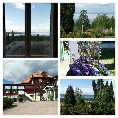 Utsikten från mitt fönster här på hotell Dalecarlia, går inte av för hackor. Efter att ha arbetat hårt hela förmiddagen fick vi en god lunchbuffé. Möte igen direkt efter lunch. Just nu är mina officiella åtaganden slut, så nu sitter jag på en parkbänk, och njuter. Sådana här arbetsdar känns ju helt ok!