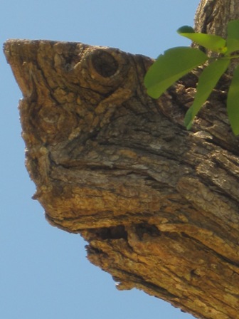 Vid infarten på vår campingtomt har vi en trädvaktare. Han (?) bor i trädet och ser väldigt sträng ut. Jag har också märk att han inte släpper in vem som helst … Och det kan ju vara bra 😉