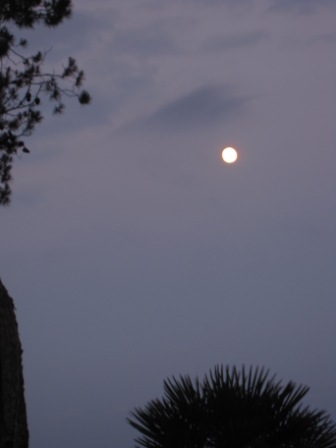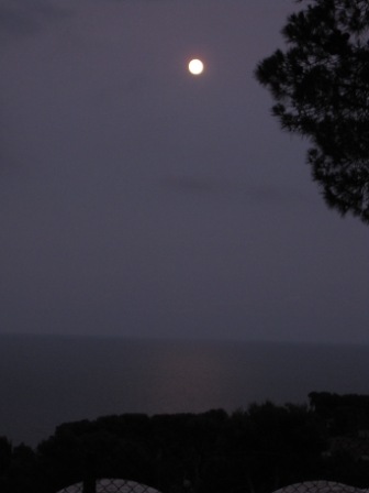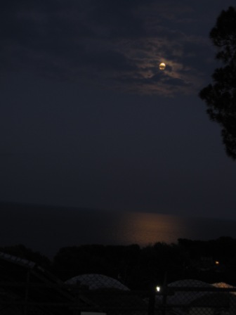 Igår firade vi midsommar med långbord hos bloggvännerna Matts och Birgitta. Det var trevligt. Idag har vi – förstås – varit på stranden. Nu på kvällen tog vi oss en kvällspromenad på denna jättestora, backiga camping. Utsikten högst uppifrån är fantastisk. Och det blev ju inte sämre av att det är fullmåne ikväll.