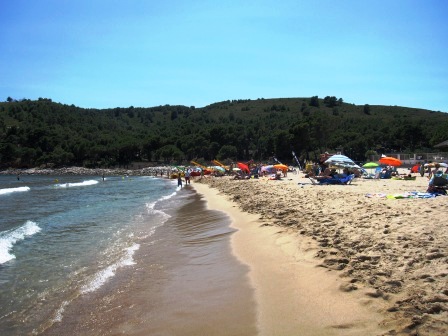 Här var det sandstrand, långgrunt och jätteskönt i vattnet. Viken här kantas av restauranger och lite butiker.