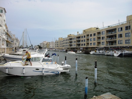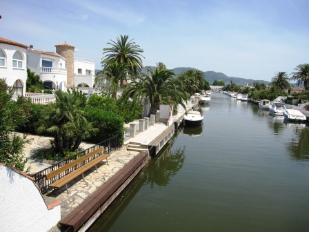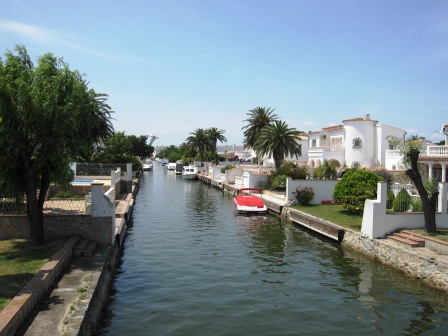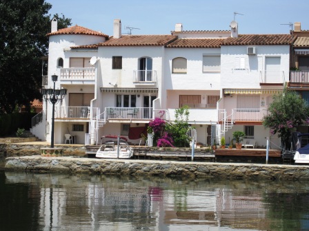 På morgonen lämnade vi l´Escala och for till Empuriabrava och camping Rubina Resort. Det var inte många mil mellan orterna och vi var framme före lunch. När vi checkat in, åt vi en snabblunch och tog fram cyklarna. För cyklarna behövs här. Det är väldigt lång till servicehuset (som får godkänt,precis som hela campingen-men inte mer) och så vill vi ju se alla kanaler som finns här i Empuriabrava. Det påminner om ett spanskt Fort Lauderdale (USA) Fantastiska hus och parkeringsplats för båtarna på baksidan av huset och parkeringsplats för bilen på framsidan. Det står förvånansvärt många tyskregistrerade bilar på uppfarterna så detta kanske är ett paradis för sol och båtälskande tyskar. Hur som helst så är det mysigt att se alla hus och båtar.