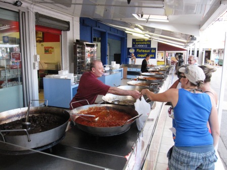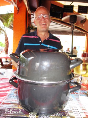 Lunchen bestod idag av en Meny. Till förrätt blev det en sallad i vinägrett och huvudmålet; 1 kilo Moules Frite. Ja du läste rätt, 1 kilo. Per person. Serverad i en gryta med vitlökssås på. Som tilltugg fick vi en stor portion pommes.