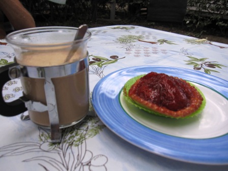 Efter allt detta skulle man kunna tro att det blev fasta resten av dagen. Men nej. Till eftermiddagskaffet klämde vi en Tarte med jordgubbar