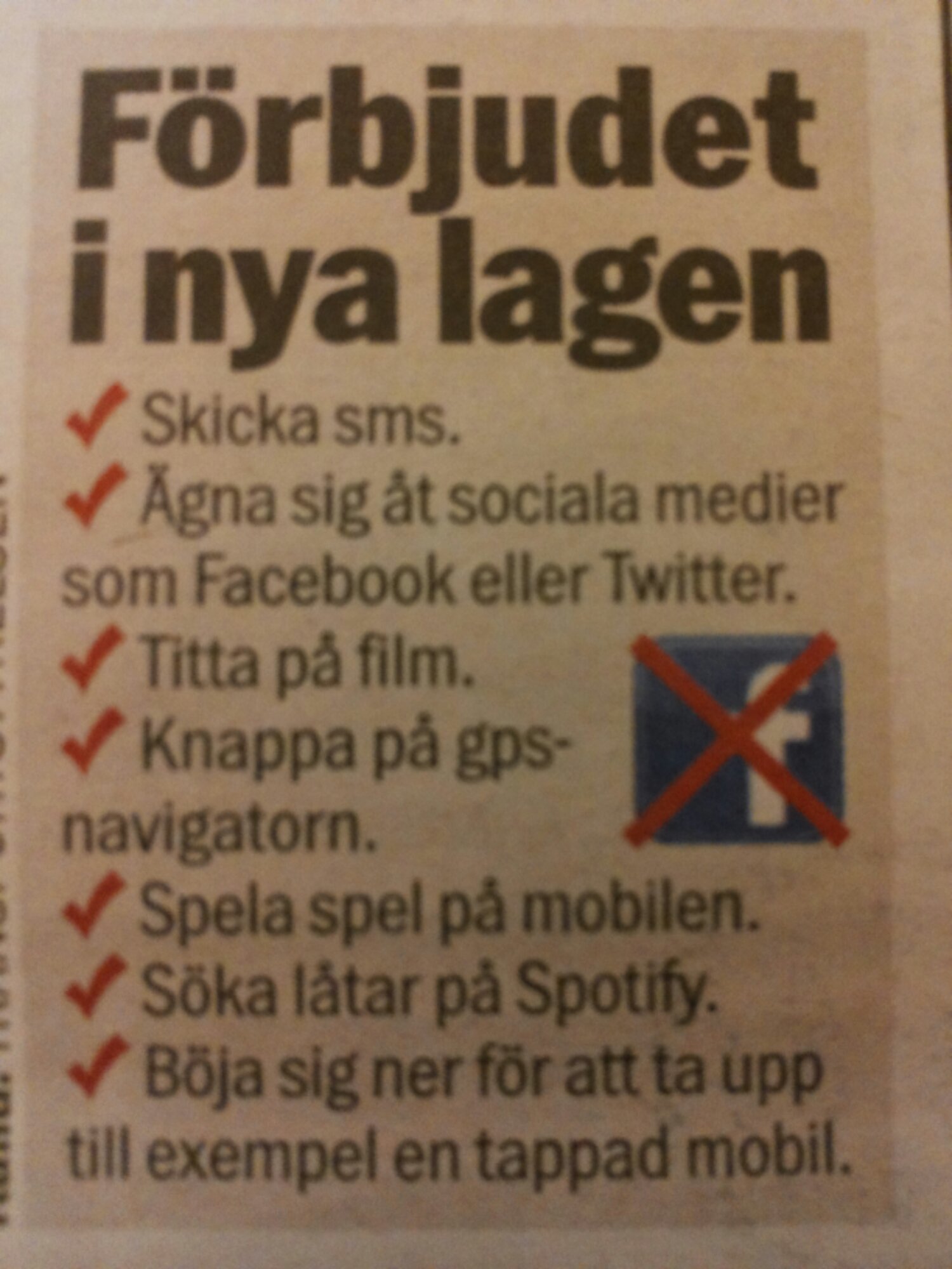 Jag kan hålla med om att lagen är luddig vilket kan innebära svårigheter, men det kanske ändå är en bra början. Det kan ju aldrig vara vettigt att ha blicken fäst någon annanstans än på vägen när man kör…