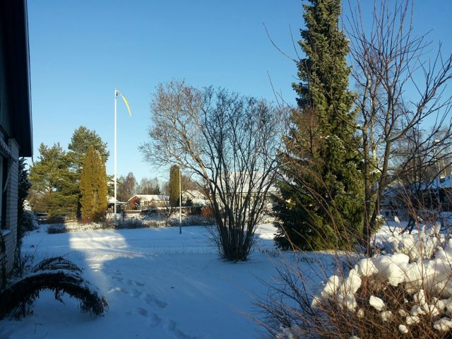 Efter stormen Sven, kom det inte solsken, utan ännu mera snö. 35 cm i fredags och idag ytterligare 15 cm. Så nog är det vinterlandskap nu. Kram