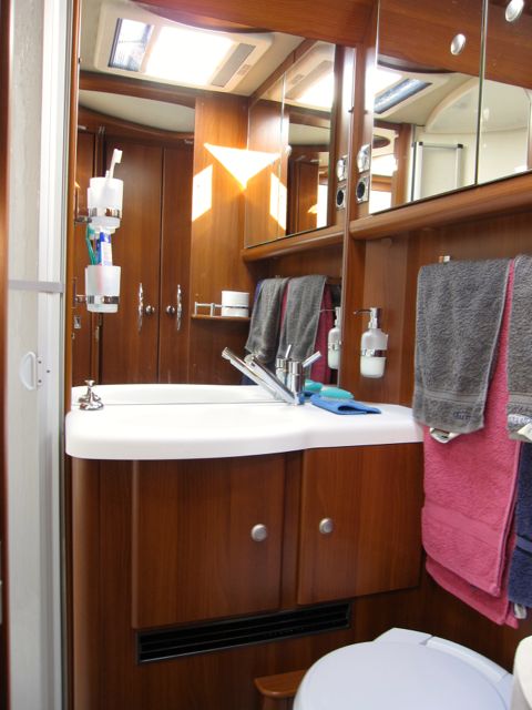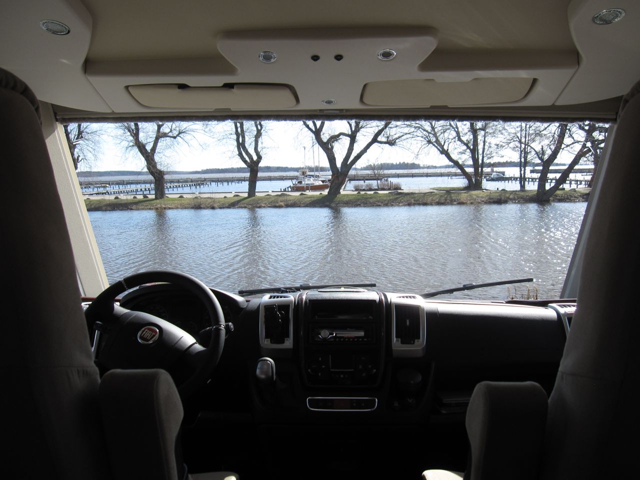 Första dygnet i nya husbilen bjöd på mycket nya intryck. Härlig nybilsdoft. Ny utsikt. Nya skåp att plocka in sakerna i. En ny värmepanna. Tidigare har vi haft Truma och luftburen värme, nu är det en Aldepanna vi har. Och oj så varmt det blev… Kl 02.30 i natt åkte både takluckan och sidofönstret upp så vi fick släppa in lite nattkyla. Efter lite klickande på displayen fick vi pannan att stanna och kunde efter tag somna om. När vi kollade i morse upptäckte vi, att vi så duktigt hade ställt in natt-temperatur på rätt sätt, men klockan som styrde det hela gick helt fel…. Nåja nu har vi i allafall lärt oss det.