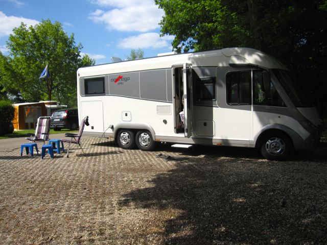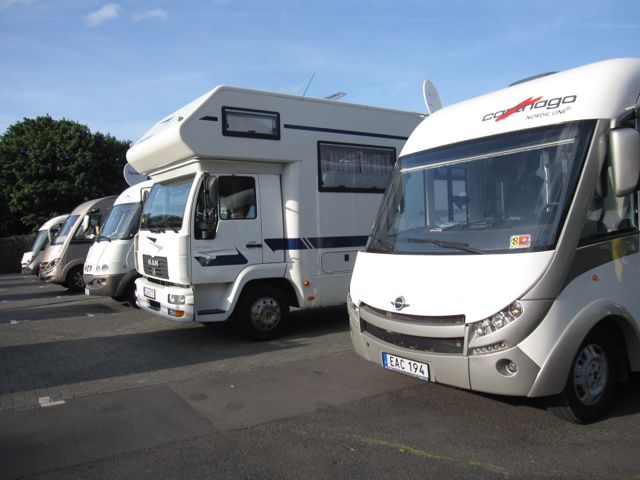 Vägen ner till Bad Neuenahr-Ahrweiler flöt på hur bra som helst. I princip inga vägarbeten och trots att det var fredag eftermiddag – ingen stillastående rusningstrafik. (om nu rusningstrafik kan vara stillastående…..) Skönt. På ställplatsen, dit vi tänkt oss, som ligger precis vid den gamla stadsdelen, var det fullt. Ställplatsen vid badet, likaså. Så vi fick åka till Apollinaris-stadion, där fanns plats. Koordinaterna hit är N50°32’40” E7°9’8”